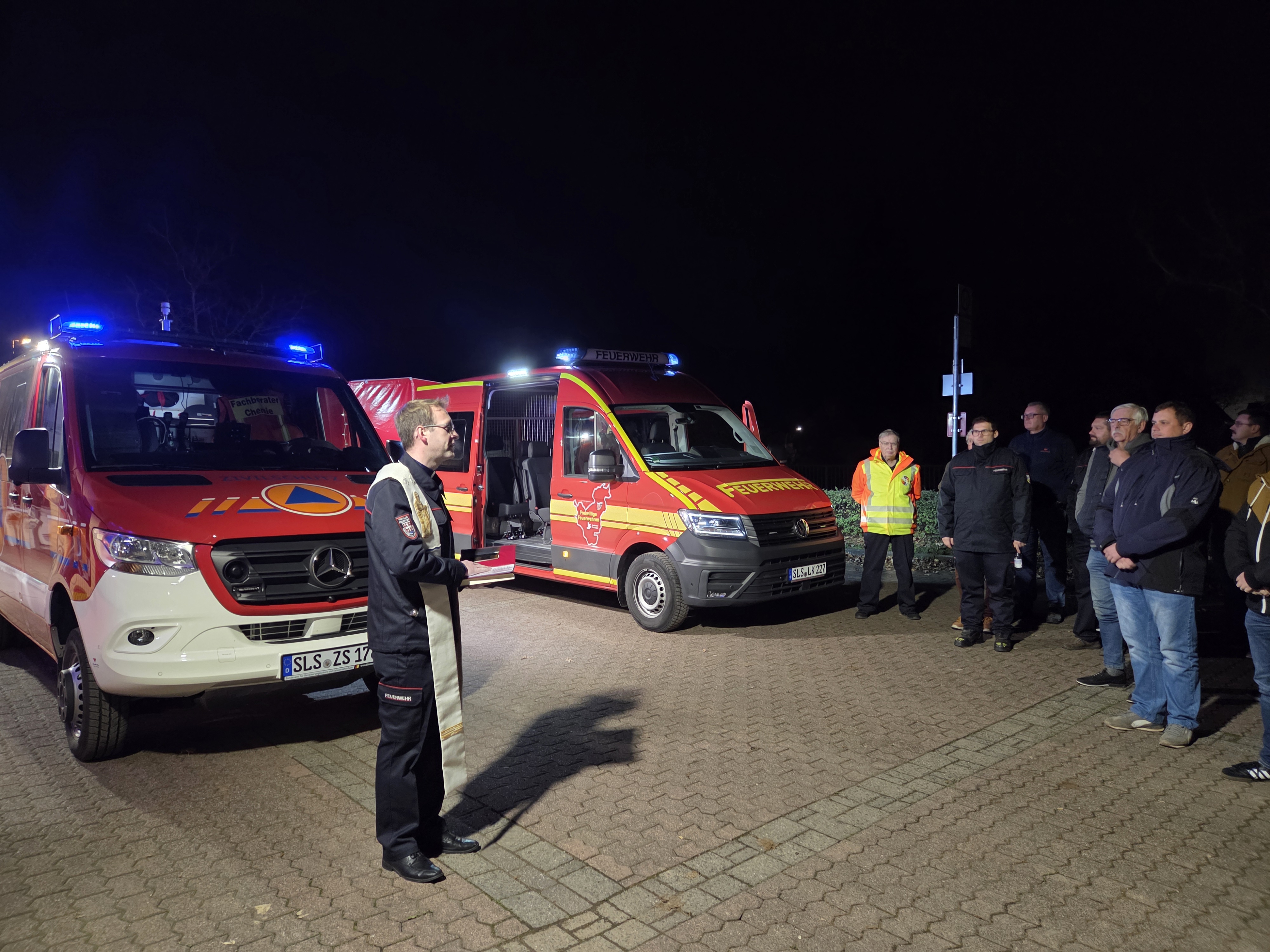 Zu den Gästen der Sitzung zählten unter anderem die Kreisbeigeordnete Sandra Quinten sowie der neu gewählte Nalbacher Bürgermeister und ehemalige Wehrführer Jörg Laub. Im Anschluss an die Besprechung erfolgte die Einsegnung des neuen ABC-Erkundungsfahrzeugs und eines Mehrzweckfahrzeugs durch Pastor Jonas Staudt, aktives Mitglied der Feuerwehr Nalbach und derzeit in Wincheringen als Pastor tätig.